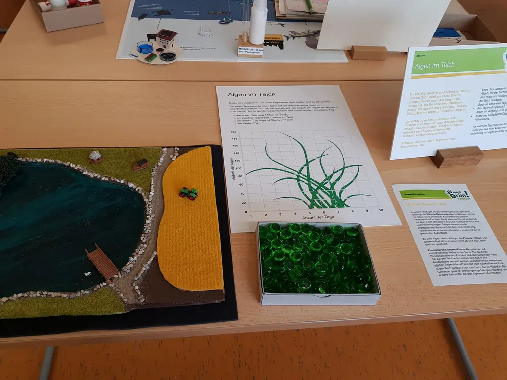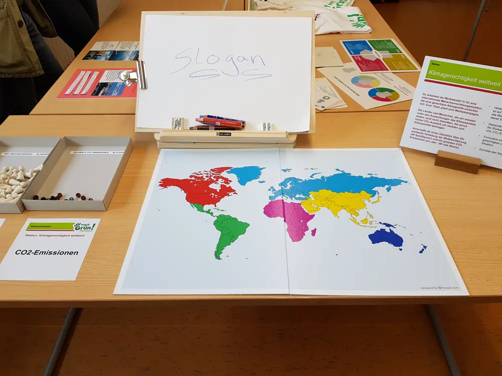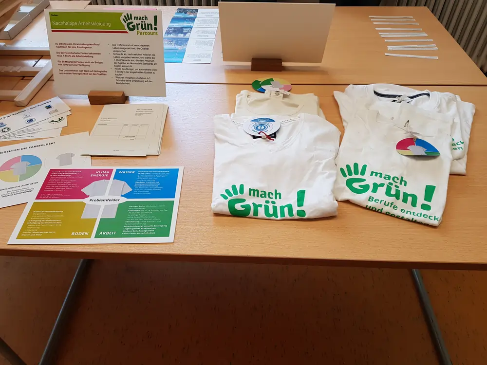 • An zehn Mitmach-Stationen lernen Jugendliche verschiedene berufliche Tätigkeiten unter dem Focus eines Nachhaltigkeitsthemas Dabei setzen sie sich mit den Kompetenzanforderungen in einer nachhaltigen Arbeitswelt auseinander.